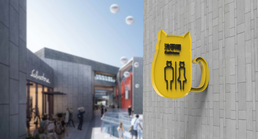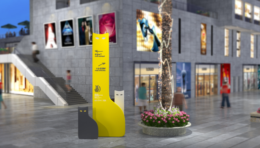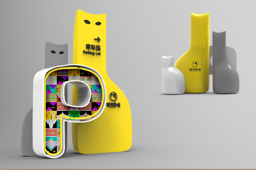 導(dǎo)視系統(tǒng)使用貓的抽象輪廓元素和明亮的顏色使其形象更加獨(dú)特,上窄下寬的造型仿佛在這里暢游生活的愜意,上半身流線型設(shè)計(jì)不僅增加了導(dǎo)視的靈動性,也使得導(dǎo)視系統(tǒng)不再單調(diào)。