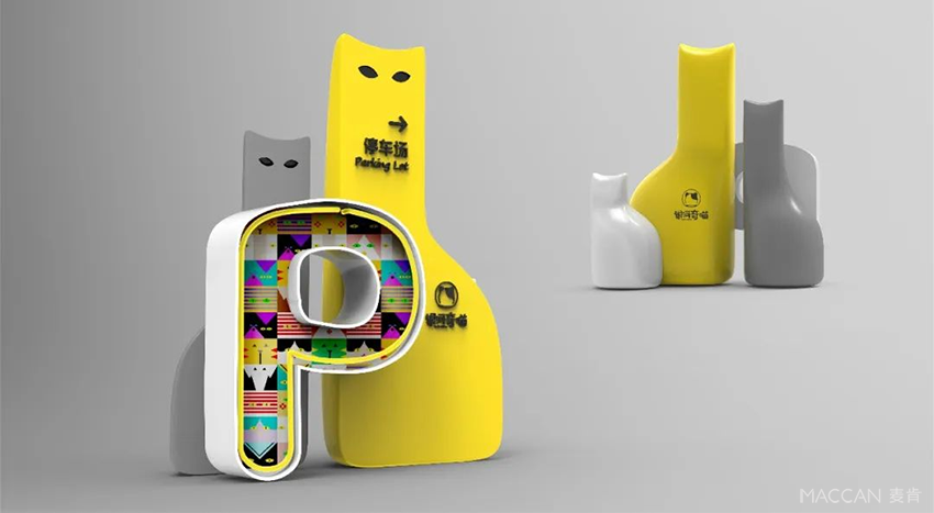 導(dǎo)視系統(tǒng)提取了貓的抽象輪廓元素為IP品牌形象