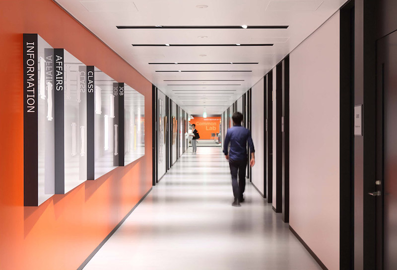 大阪工業(yè)大學(xué)大宮校區(qū)2號樓 導(dǎo)視設(shè)計完美延續(xù)建筑語言