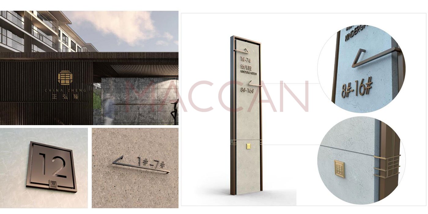 標識導視設計強調(diào)了住宅區(qū)的功能屬性和生活屬性,思考如何利用有限空間呈現(xiàn)功能、品質(zhì)與人性化。