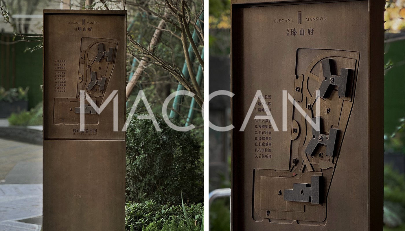 萬科·瑧山府住宅項目位于廣州白云新城核心區(qū),擁有無遮擋的頭排云山視野,并與千億總部經(jīng)濟集群隔街相望。進入萬科瑧山府,仿佛置身于云山之中,每一步都充滿了寧靜園林的巧思與韻味,讓人在信步閑庭間享受寧靜與和諧。麥肯以一貫的精湛工藝,為每一位追求“山居”的居者,打造理想的空間氛圍,追求每一個細節(jié),都如同藝術(shù)品般精致完美,采用古銅做舊銘牌,結(jié)合三維金屬立體字的標(biāo)識,營造出時光沉淀的韻味。
