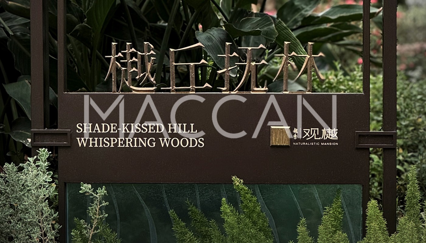 在廣州天河的核心板塊,越秀·觀樾以 1.98 的低容積率、5.3 萬平方米日月雙湖景觀,為城市居者筑起一方低密度生態(tài)住區(qū)。當建筑與自然相融共生,麥肯標識以匠心導視服務,為這片湖居秘境注入美學脈絡(luò),讓每一次歸家都成為穿越風景的詩意旅程。