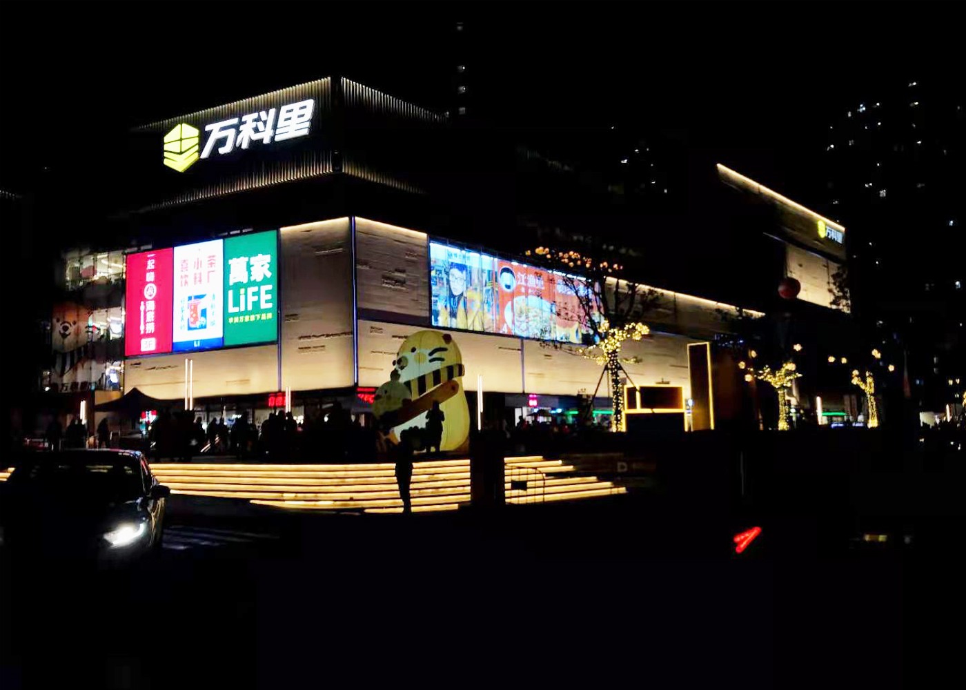 廣告燈箱的對(duì)象是動(dòng)態(tài)中的行人,行人通過(guò)可視的廣告形象來(lái)接受信息,設(shè)計(jì)師通過(guò)對(duì)整個(gè)項(xiàng)目的考察,距離、視角、環(huán)境三個(gè)關(guān)鍵因素的考慮,凸顯出萬(wàn)科里的獨(dú)特性。